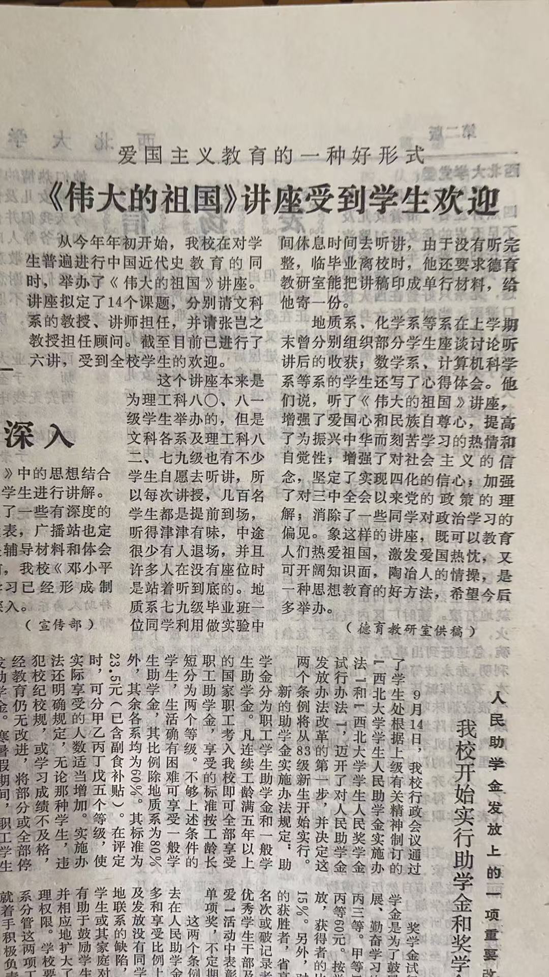 西北大学报关于《伟大的祖国》讲座报道