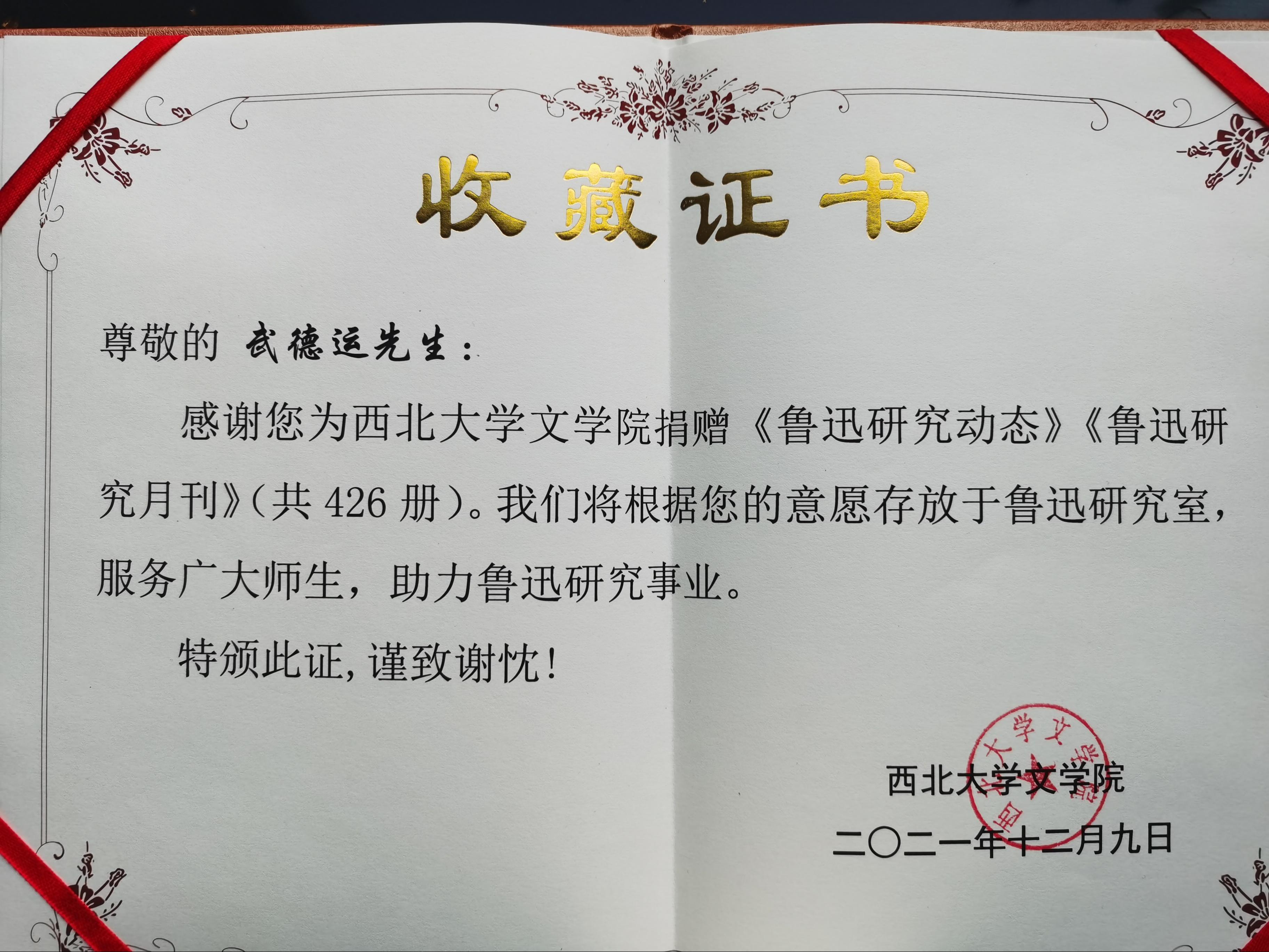 2021年12月9日下午两点半,第十五届研究生学术月讲座活动暨《鲁迅研究月刊》捐赠仪式在76net必赢官网大会议室成功举办。武德运先生曾任西北大学图书馆学情报学系副主任、西北大学图书馆副馆长,兼任陕西省鲁迅研究学会副会长等职。发表过鲁迅研究、图书馆学及其他文史方面文章近200篇,是陕西鲁迅研究史上的一位重要学者。