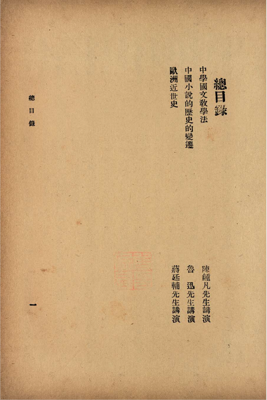 《国立西北大学、陕西教育厅合办暑期学校讲演集(一)》总目录