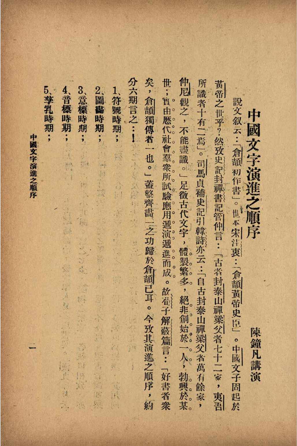 《中国文字演进之顺序》陈钟凡讲演