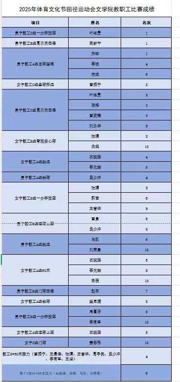 最终取得了运动会教职工团体第5名!